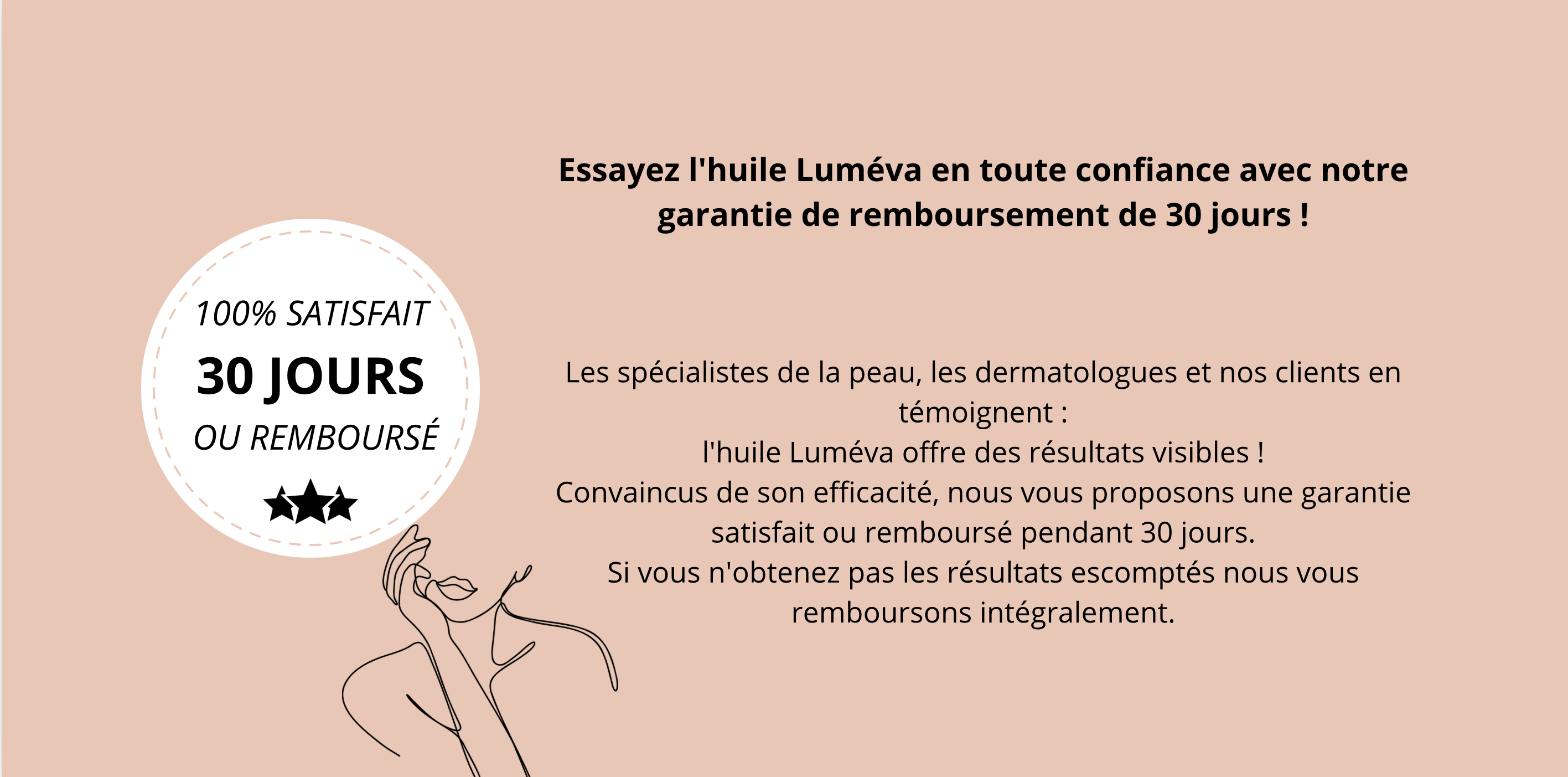 Essayer l'huile Luméva sans risque pendant 30 jours. Si vous n'êtes pas satisfait vous avez la possibilité de demander un remboursement intégral