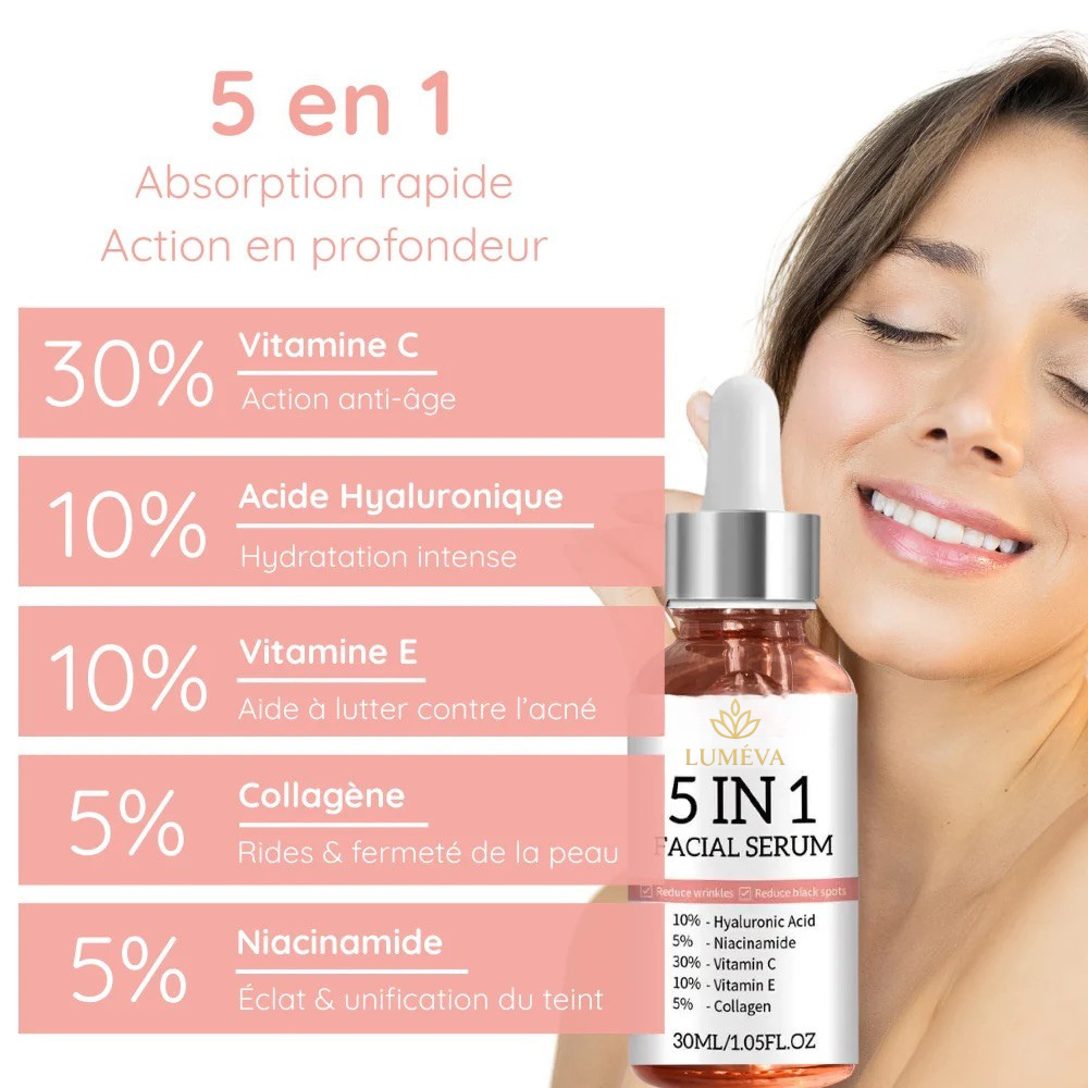 Il lisse les ridules, raffermit la peau, illumine le teint, resserre les pores et hydrate en profondeur grâce à sa formule 5 en 1.